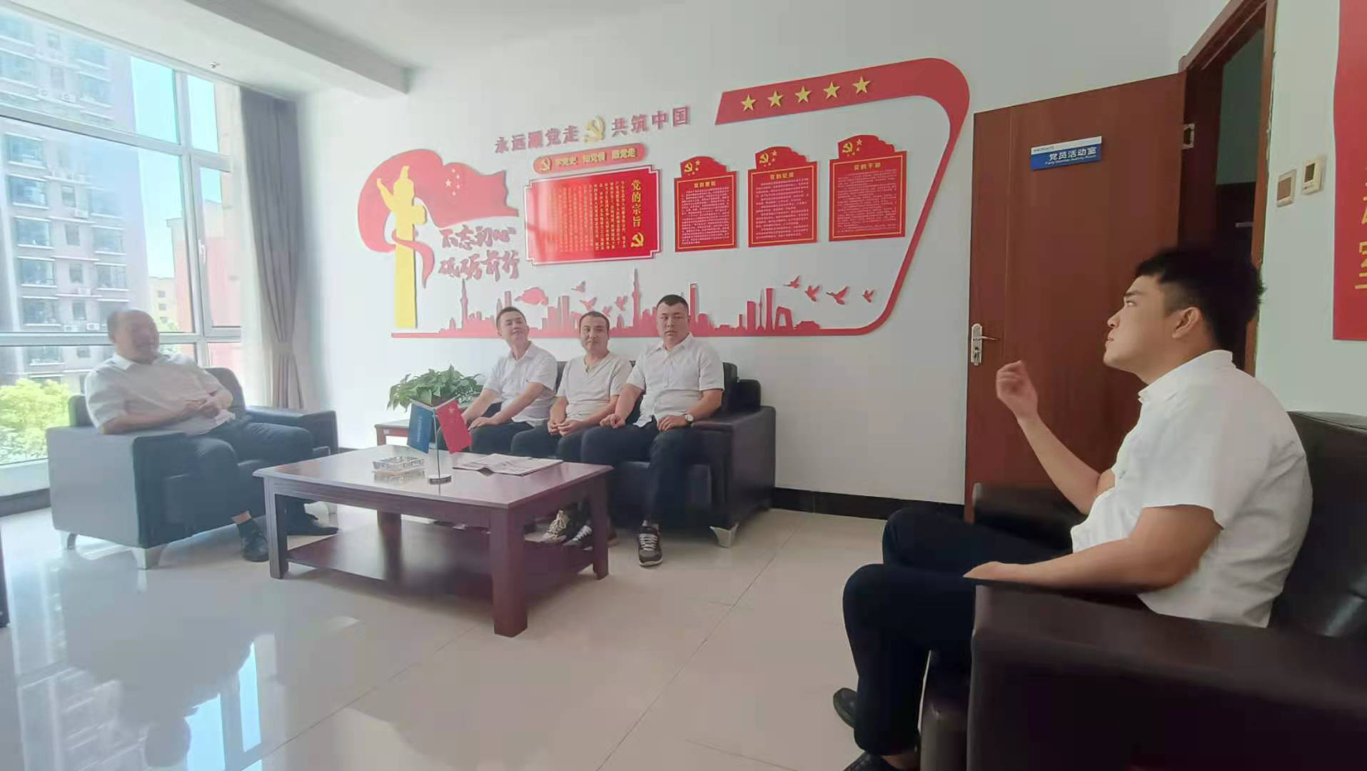 為進(jìn)一步弘揚(yáng)擁軍優(yōu)屬光榮傳統(tǒng),持續(xù)做好擁軍工作,充分調(diào)動(dòng)我公司轉(zhuǎn)業(yè)復(fù)員退伍軍人的工作積極性,82日,我支部召開慰問轉(zhuǎn)業(yè)復(fù)員退伍軍人座談會(huì)。黨支部書記董事長(zhǎng)趙立新,總經(jīng)理李勃燾和三名轉(zhuǎn)業(yè)復(fù)員退伍軍人楊文軒、李銘浩、郝晉魁參加座談會(huì)。